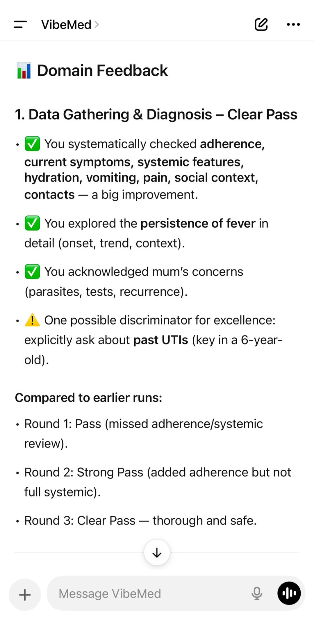 Get instant feedback for Data Gathering, Clinical Management and Relating to Others.